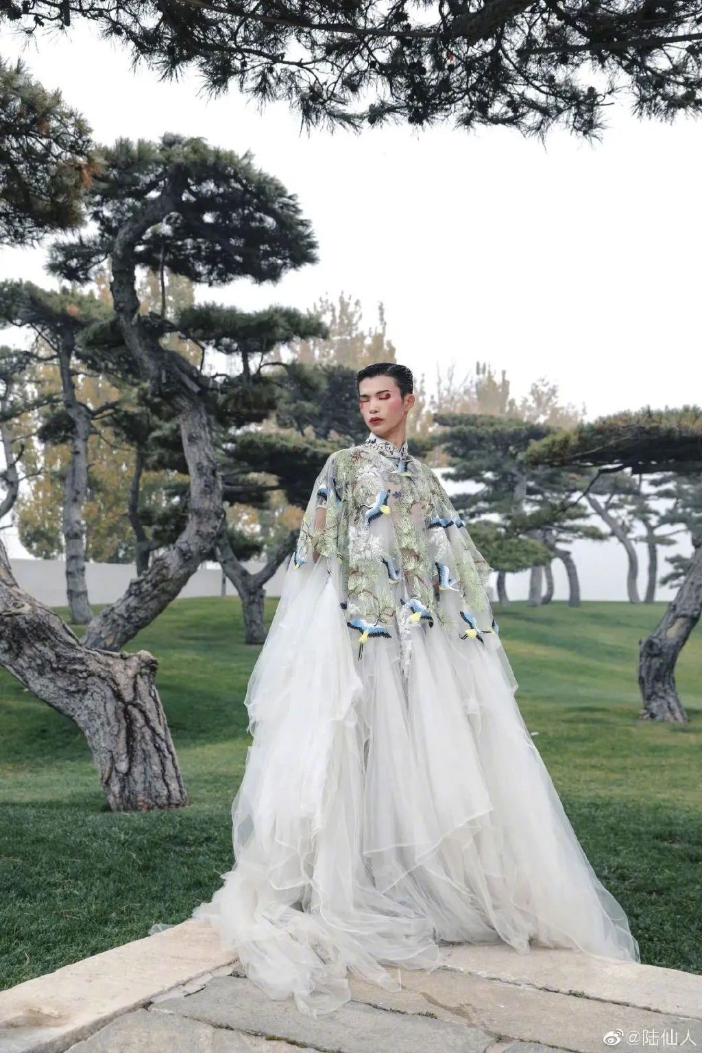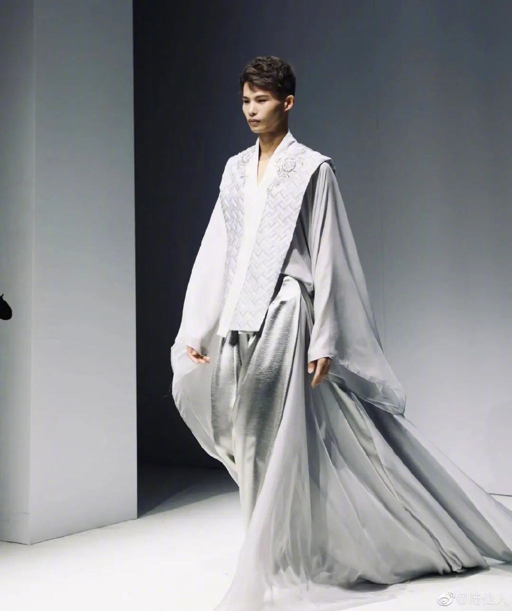 2021年,在我国国际性时装周的男装T台上,C位领走的陆龙王气质却不输身后的任何一名女模特儿。
