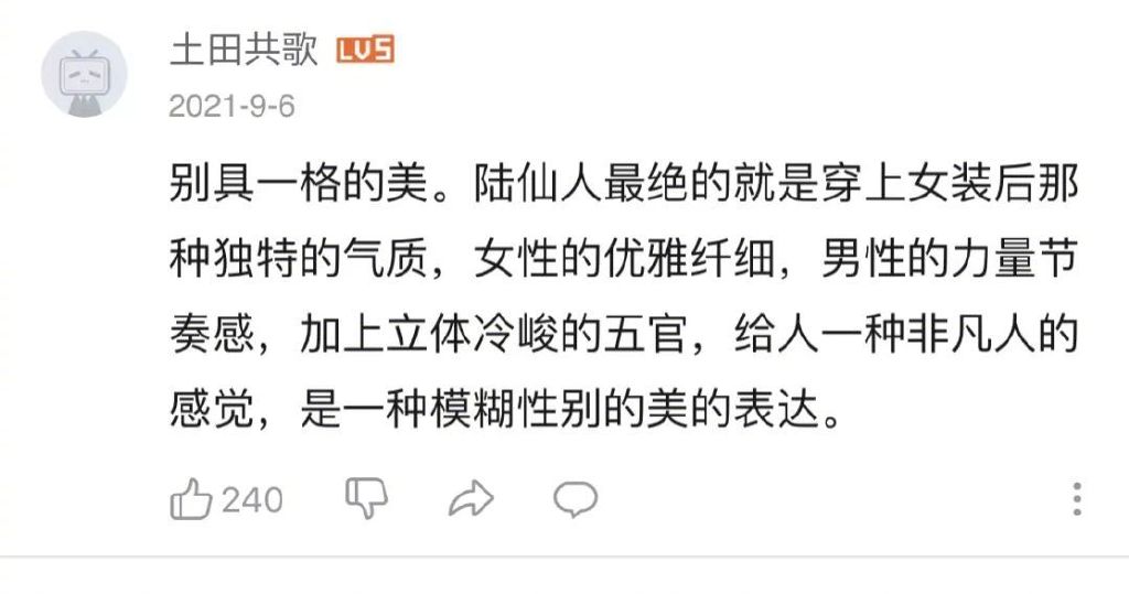 一般男人穿男装要么太媚,要么太俗,而不管是穿男装还是男装,陆龙王总能轻松驾驭: