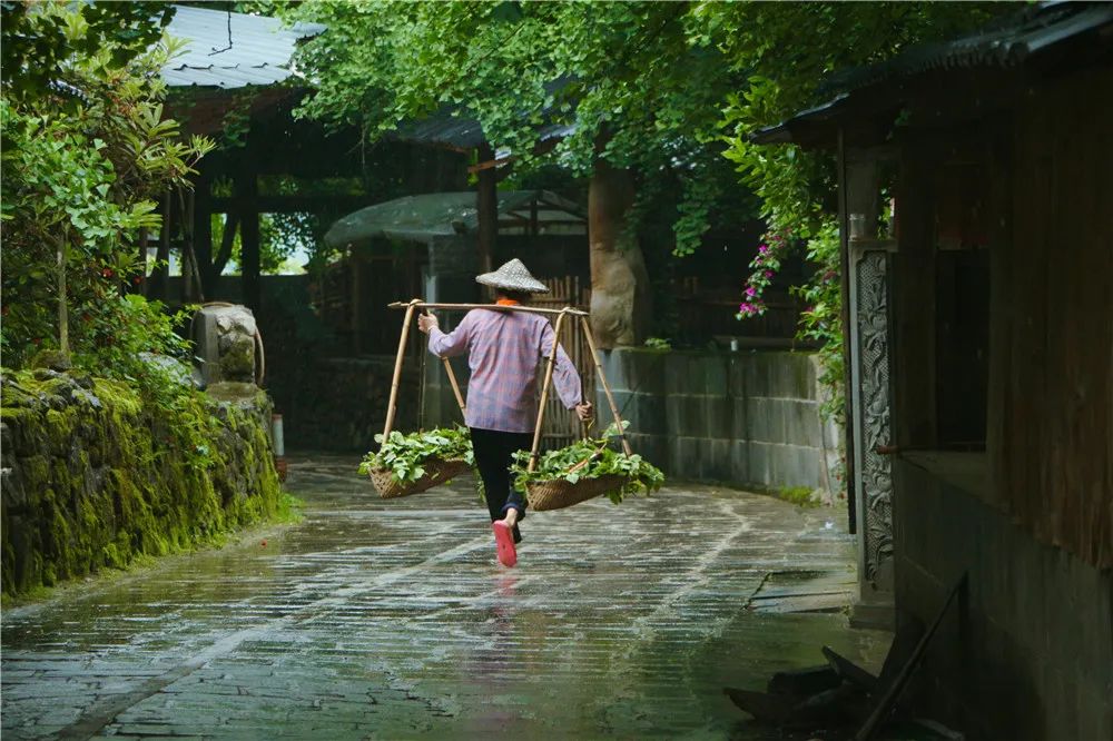 质朴,是村子的底色。无论晴雨,总能看到松柏小城农人劳作的身影,晴时松柏树下乘凉纳鞋底,笑语晏晏中是生活热气腾腾的模样;雨时戴着斗笠披着蓑衣穿梭巷弄的农人,步履匆忙中续一季希望。