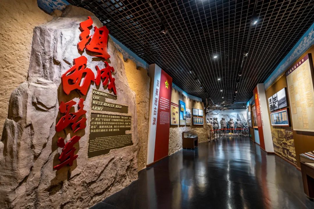 整个纪念碑分三层结构,主展区为地上两层,以西风烈·战旗红为主题,由序厅和挥师进河东、组成东路军、突围干柴洼、阻击横梁山、血战古浪城、血染战旗红、丹心昭日月、浩气永长存8个部分33个单元及尾厅组成。