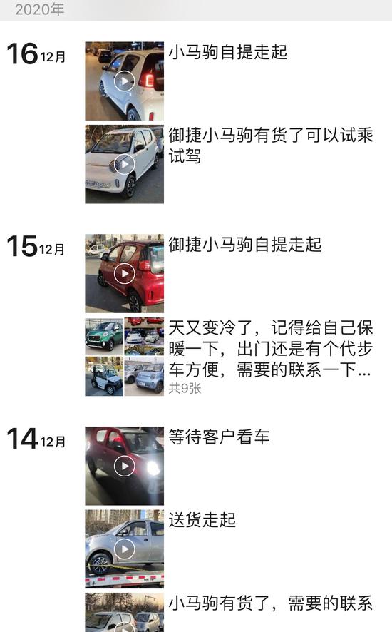 但也有个别的销售商,仍然在线上偷偷地地卖车。一名商家就表示,现在一万多到三万多价位的车都有,得从山东往上海发物流。送到我家有点悬,他们给你送到一个物流园,你他们去取。这位商家的微信朋友圈里,中老年家用车被他称作是占车位神器,而且现在天又变冷了,出门还是有个家用车方便。