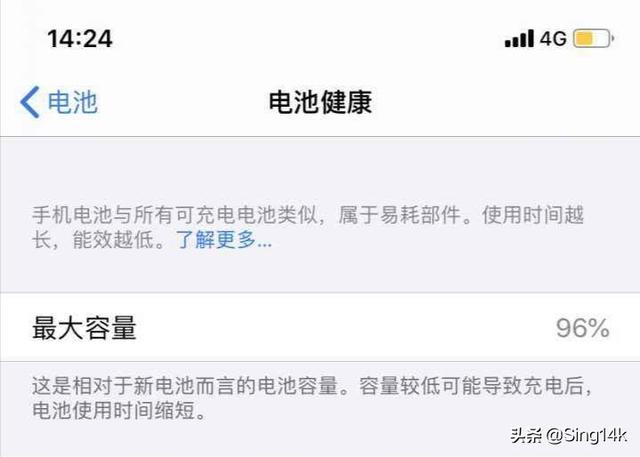 iphone xs max采用四个月,六天两充的情况下,电池组身心健康度在96%是较为恒定的,恒定采用两年的iphone,假如电池组身心健康度100%那就不恒定了。