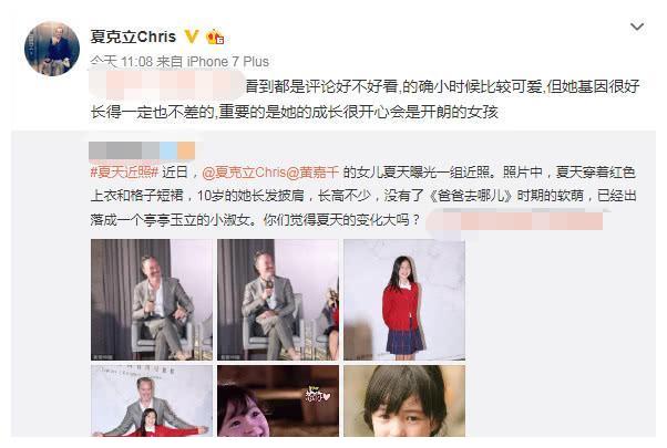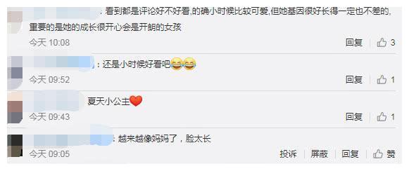 看见网民们争相都说冬天没儿时漂亮,夏文达心里很难受,也很无奈,承认儿子没儿时调皮,但这是高速成长的必然结果,儿时都很萌很调皮,慢慢长大褪去稚气当然就没儿时所以调皮了。