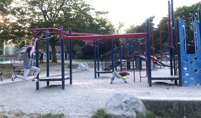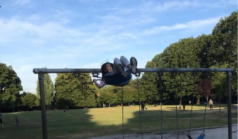 玩荡秋千对于冬天来说完全就是热身,才是刚刚开始,随后冬天又开始玩吊单杠,冬天双手抓着单杠吊起整个身体特别轻松,别看冬天瘦瘦的,但是身体素质却特别好,热爱体育运动,勇敢自信,各式各样体育运动都敢尝试,像这种吊单杠对她来说都是小儿科啦。