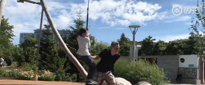 夏文达陪儿子嬉戏的这时候不会只是看着儿子玩,每次单厢参与其中,高兴的像个小孩一样领着儿子一起嬉戏,那感觉就像重温了一遍儿时。
