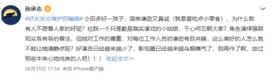 田曦薇好友和合作导演则纷纷下场,为她打抱不平。