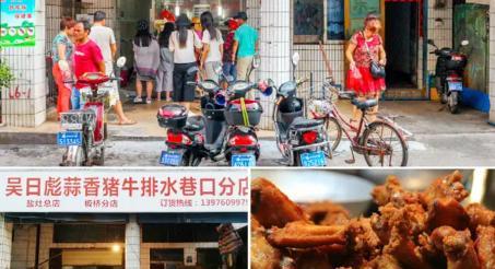 吴日彪的蒜香猪肉牛排在这儿已经有二十多年的历史了,每天中午和晚饭的时候,都会有很多人在这儿排队。