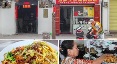 要想品尝地道的海口面,请去新民西路的亚妹海口粉铺。据邻居们说,五十年代潘亚妹的爸爸在街头扛着一大堆海口面粉,15岁起就跟着爸爸学习制作海口面粉。