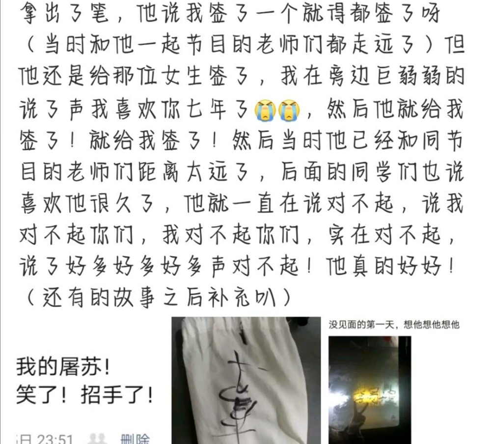 一个喜欢他7年的影迷,在见面会没能如愿拿到他的签名,他对影迷连连道歉实在对不起。