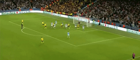 第56两分钟,曼城解围角球,罗伊斯小禁区左侧头槌,贝林厄姆小禁区边缘头球蹭入。