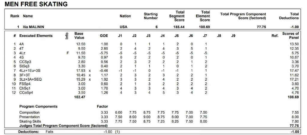 作为2022年世青赛冠军和美国锦标赛银牌得主,伊利亚·马里宁进步明显,虽然在成年组的比赛成绩远不如陈巍,2022年世锦赛就是证明,但是他的竞争力不输周知方,潜力和综合实力得到了广泛认可。这次美国经典赛,伊利亚·马里宁状态出色,出场时信心十足,最终成功完成4A并得到认证。