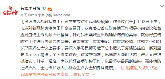 2021年1月3日,邯郸市应对新冠肺结核禽流感组织工作会议召开,会后决定,邯郸市快速步入战前状况,启动实施禽流感防控组织工作每项组织工作制度机制。