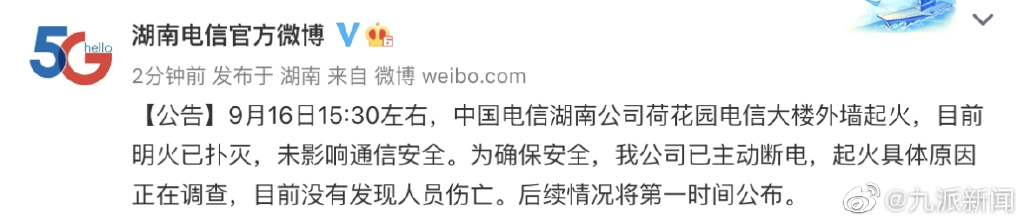 9月16日15:30以内,中国移动子公司湖北子公司荷长廊电信子公司大厦墙面着火,现阶段氨气已驱散,未负面影响H55N。为防患于未然,我子公司已积极主动停机,着火具体内容其原因已经开始进行调查,现阶段没辨认出相关人员死伤。先期情形将第三天数发布。
