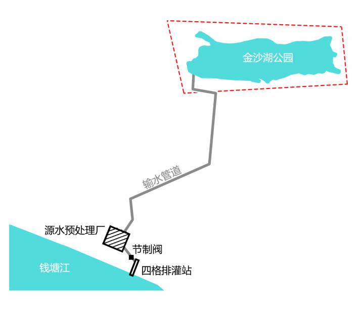 原来在鄞州聚首河与上虞江的交汇处,有两个四格排灌站。上虞江水经由四格排灌站抽取,送至源水预处理厂进行水质处理。之后,清水经输水管道,流入金东湖区内。