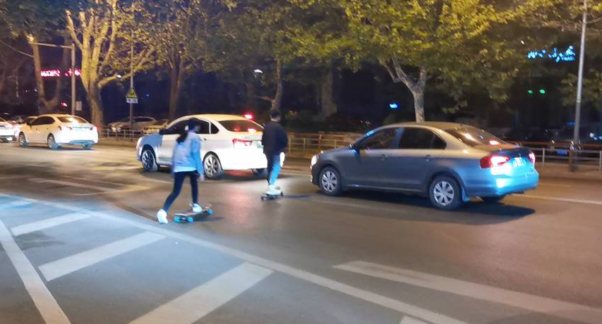 ?我们的小孩在约滑时都是选择像星海广场浴场的步行街、东港海边的自行匝道这样不通机动车辆的路段,或者是星海广场这样的封闭路段。赵先生说,偶尔需要过绿化带的时候,都是把板子拿在手里,而不是踩在身前。