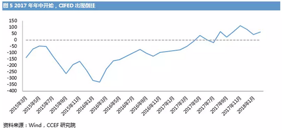 由于CNH港币消费市场壳状性弱于CNH消费市场,因此,CNH港币债券收益率常年高于CNH,持有至到期股权投资者在CNH消费市场可以获得壳状性溢价;但2017年年中开始,由于金融去杠杆的影响,内地债券消费市场利率走高,CNH和CNH债券收益率出现倒挂,CNH消费市场溢价转为负,表现为我国银行全境内外债券项目投资比较指数(CIFED)由负转正。