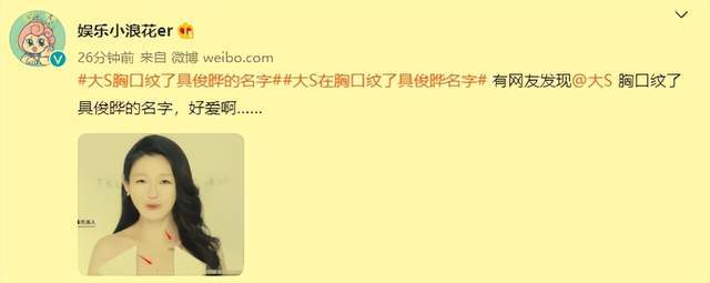 据了解,大S此次伤愈,尽管没做后期的宣传品,但有关的酬金十分高,约在400万日币左右。不过这并并非网民最感叹的,有细致入微的网民发现,大S的小腿处为一十分醒目的纹身,这个纹身貌似并没什么欠妥,但影迷却则表示,其中的K代表KOO,也就是具俊晔。