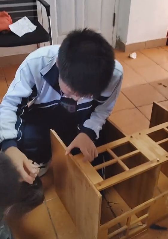 而此时,两个哥哥在家里,忙着安装书柜,孙卓做主力,孙辉打下手,两个小兄弟忙的不亦乐乎。很快,一个书柜就有了雏形,不得不说,兄弟两个动手能力都是相当强,配合的也是相当默契,也许这就是血缘,哥俩好像从未分开过。看着满地的小木板和小木棒,还有一地的螺丝,手残党表示,根本无从下手。