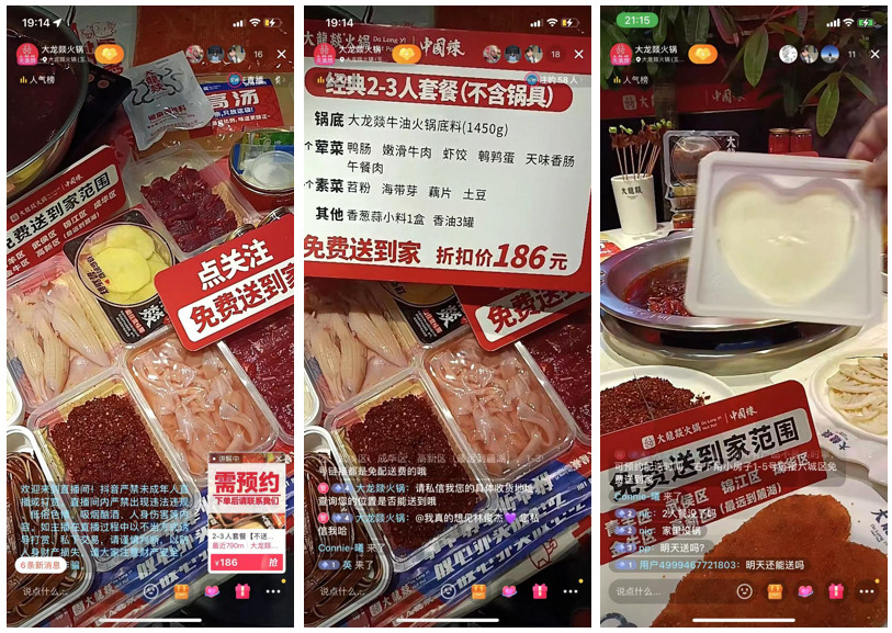 餐饮业新连锁店在与小龙燚网络营销副总裁任俊了解情形时,其则表示:9月1号就迈入了携程、饿了么、抖音当晚直播的多方位送餐,目前,携程、饿了么网络平台送餐每晚仅约800+单,抖音锥果每晚有100+单的大排骨送餐。