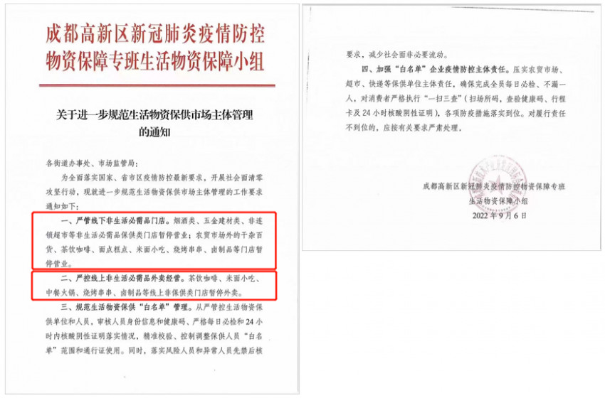 也就是说,除了非保供类门店,在高新区中止了其他门店的营业和送餐生意。