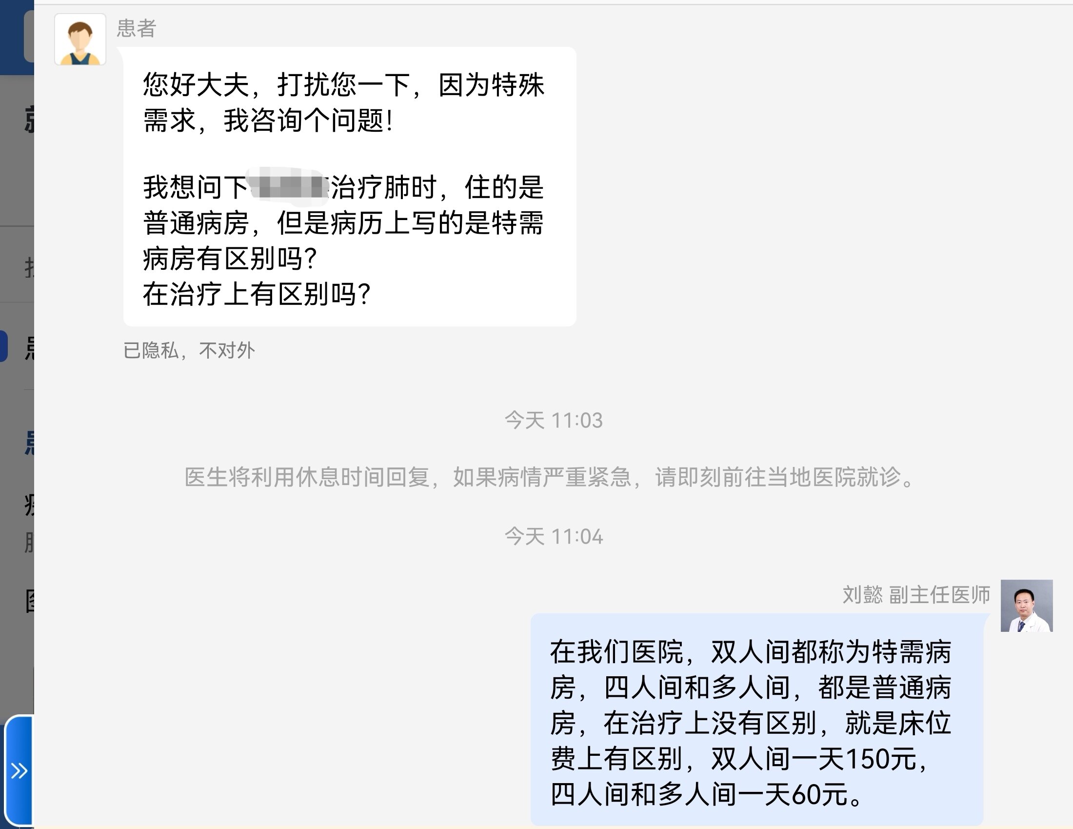 在他们疗养院,住家庭版和起居室都称作专家门诊监护室,四人世间和多人世间的称作一般监护室,但并没显著的界线,Deoria有的是疗养院专门针对叫专家门诊监护室。差异是每晚Couiza是不那样的,化疗没任何人的差异,不能即使住在家庭版就有两套化疗计划,住在四人世间就有另两套化疗计划。