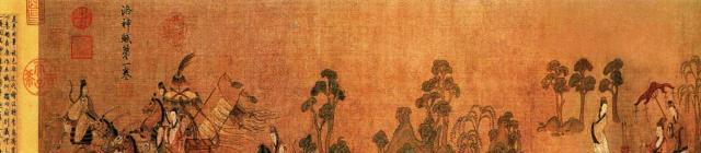 《洛神赋图》是以故事发展的基本线索为脉络进行展开的,《洛神赋》是依据三国时期著名的文学家曹植的《洛神赋》而画的。曹植在洛神赋中营造了人神相恋的梦幻境界,抒发了他失恋的感伤。书风在这幅画里,分段整体表现人物性格的故事情节,将其放在自然山川的景物之中加以展开,人物性格的情感不是透过面部表情来传递的,而是透过人物性格之间的相互关系加以微妙的展现出。洛神与曹植含情脉脉,但是最后因为人神既殊,不得不分离,展现出了难以抑制的惆怅情绪,整体表现了书风悟对空神的表演艺术提倡。