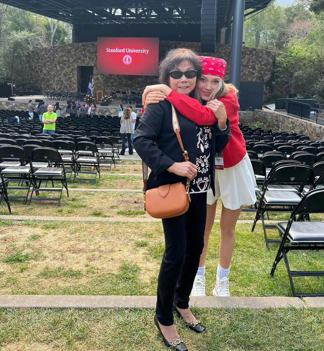 相片中,谷爱凌身着印上史丹福象征的黄色长裤rubra衬衫,微笑璀璨热血洋溢着,一动不动爷爷手臂上极为亲暱,秒变调皮小姑娘。