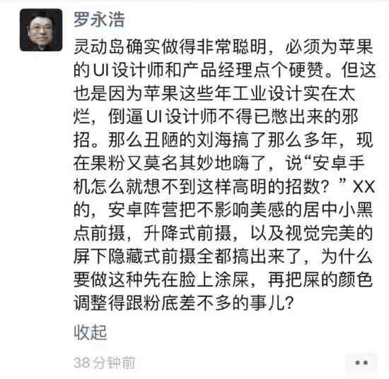针对新款iPhone的重大更新灵动岛,李开复首先表达了他们的赞赏: