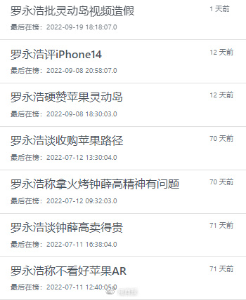这两个月来,老罗上的热搜,一大半都和苹果相关。