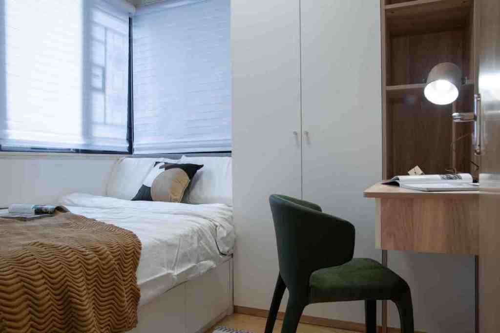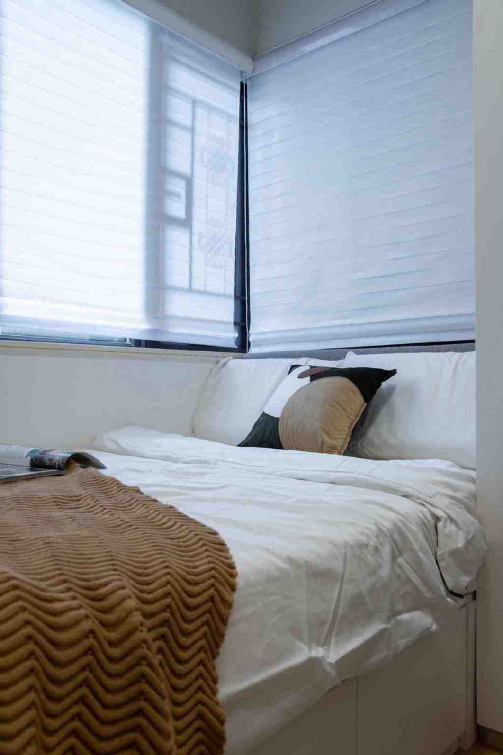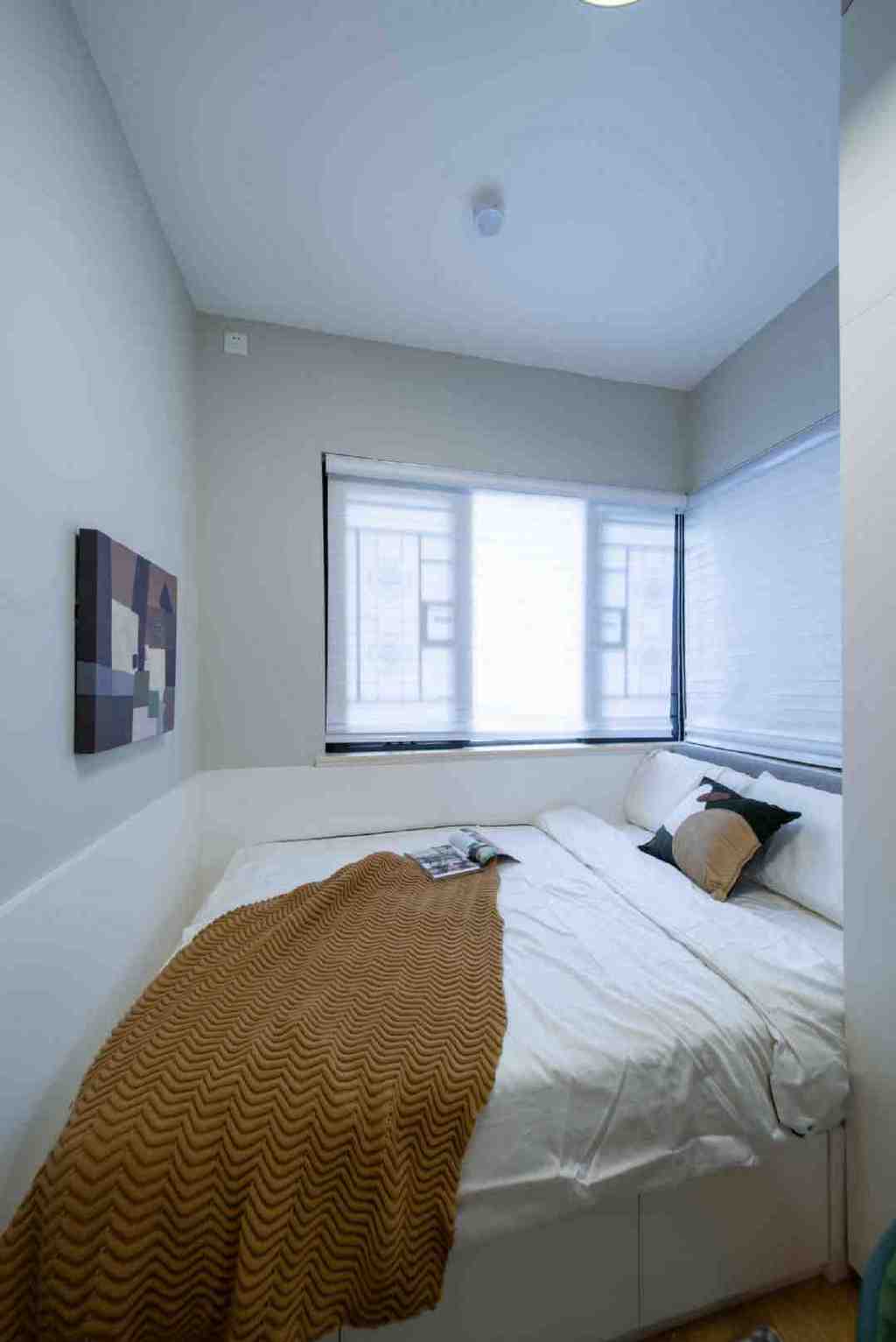 卧室利用原来的飘窗,合理地规划出两个大容量的储物内部空间,并且采用了隐藏式的设计手法,让内部空间更为的高效和干练。