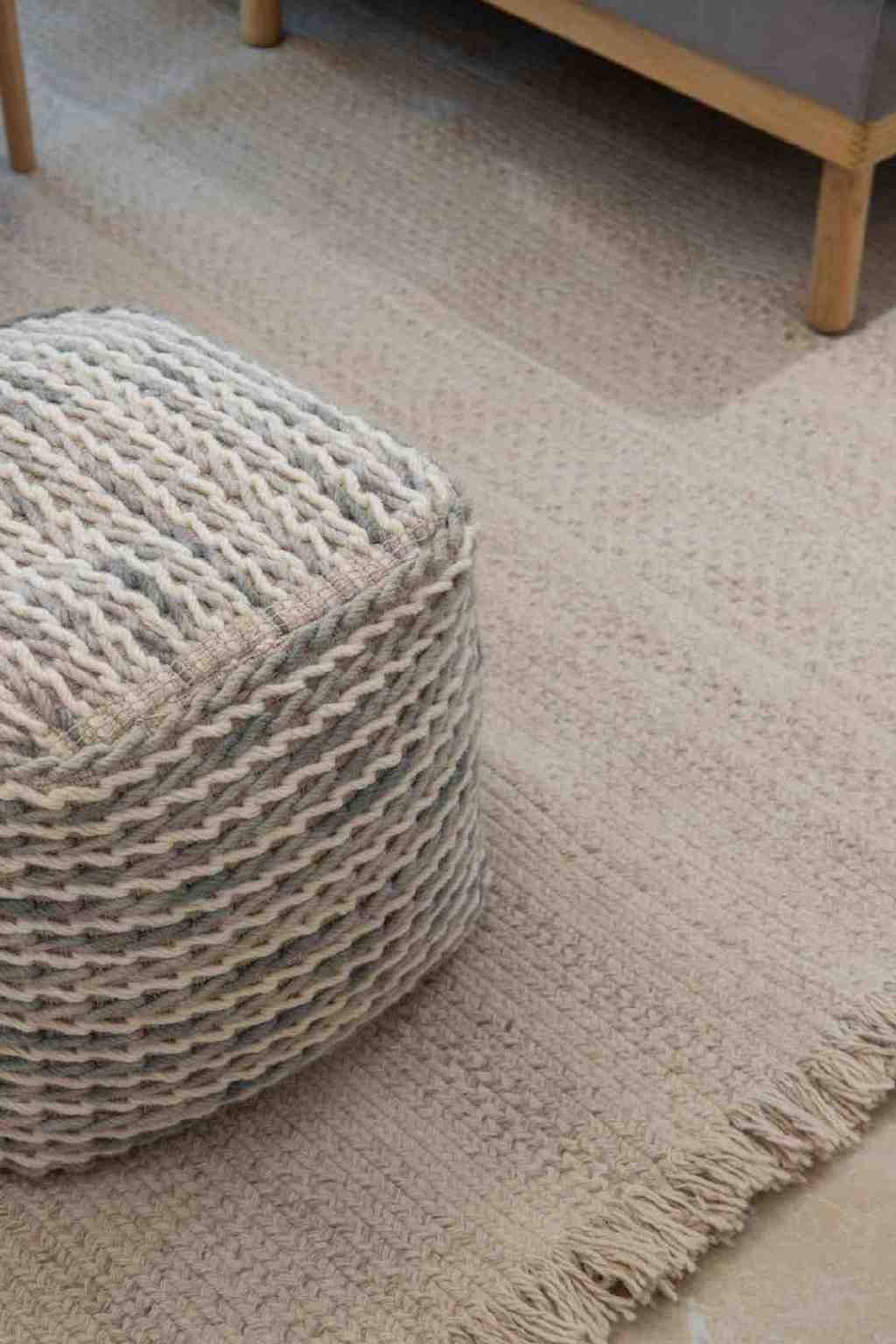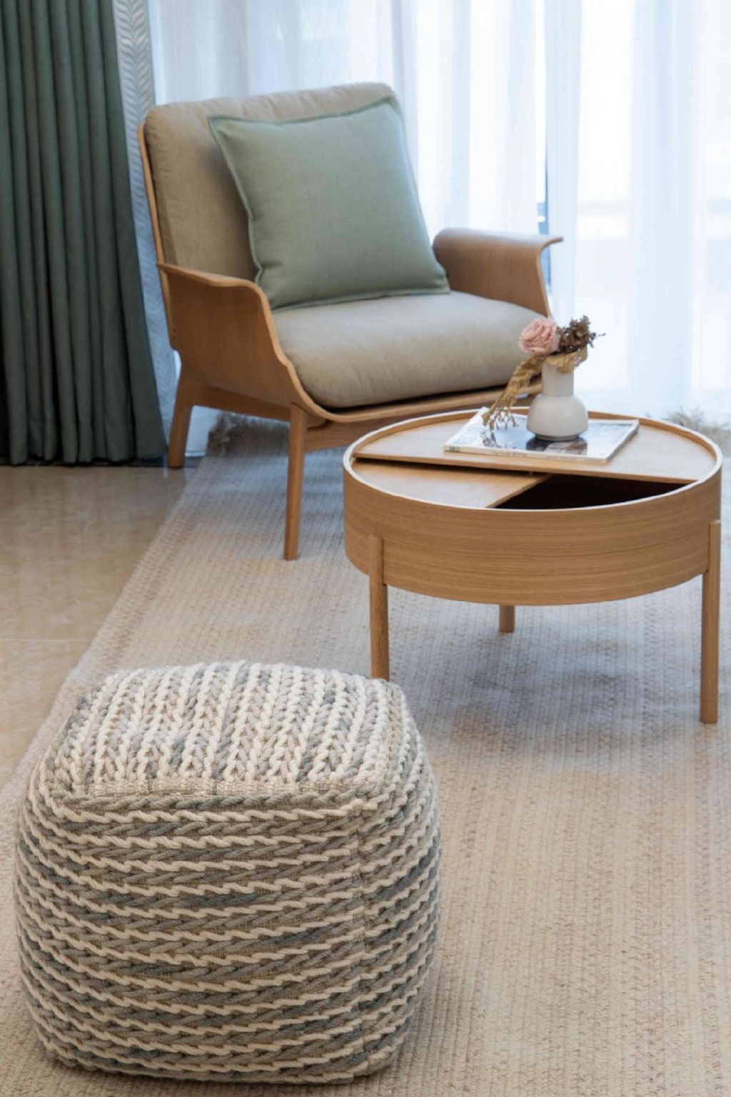 细腻的布艺沙发搭配条纹抱枕,又选择了棉麻材质的地毯,让整个公共内部空间都散发着一种自然的肌理感。