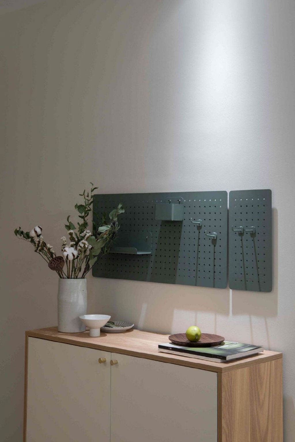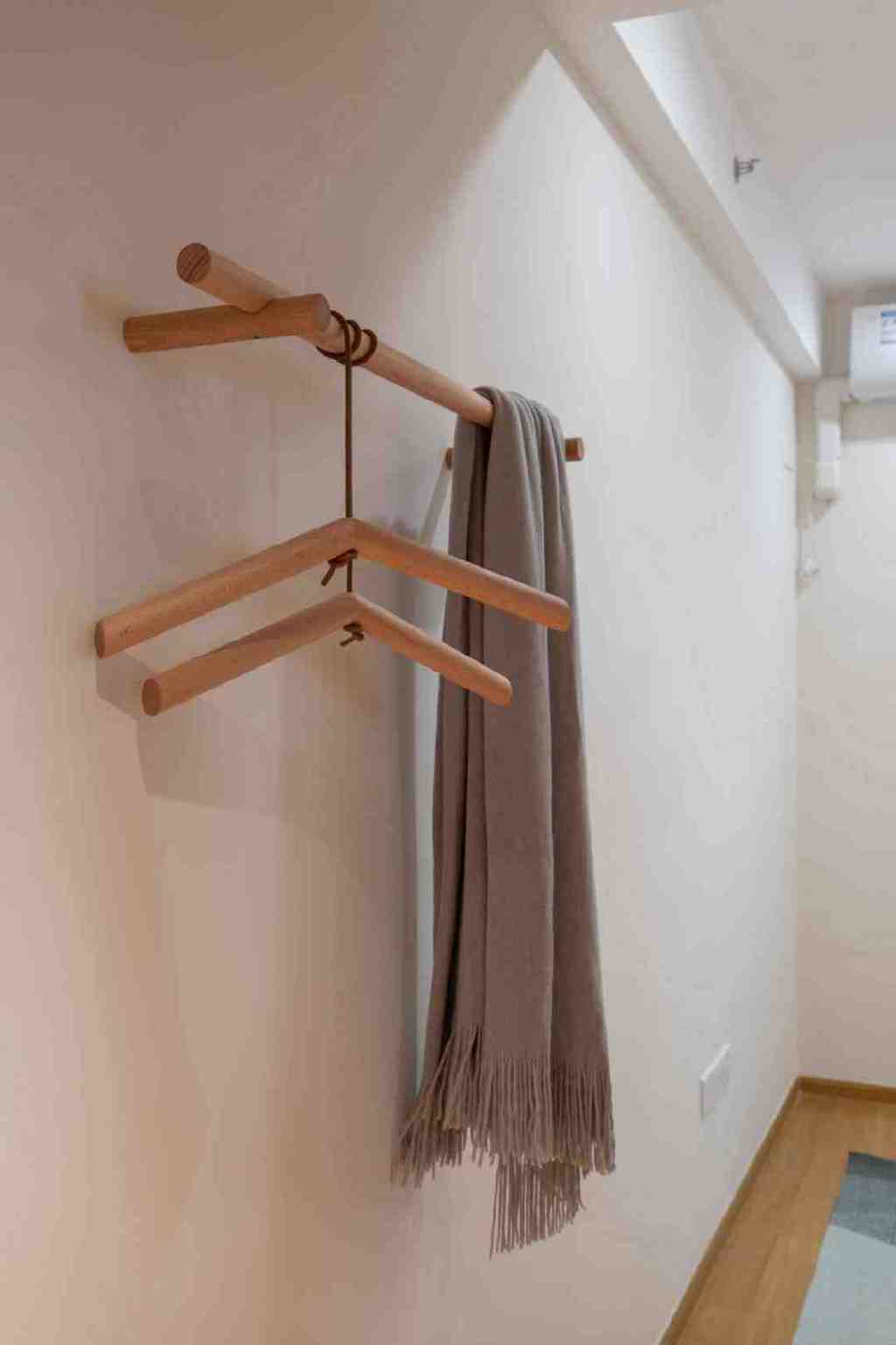 背景墙选择了,更为具有立体感的挂衣架,平时也可以作为装饰品使用,很好地修饰了整个内部空间的格局。