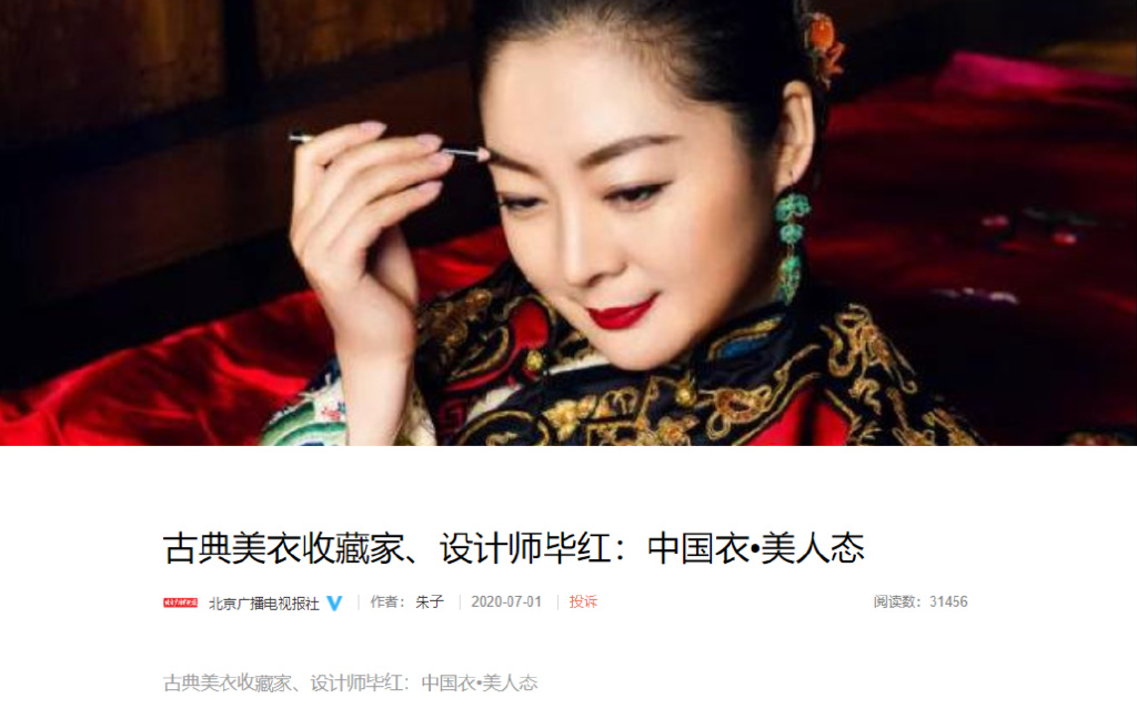 比如在2020年7月1日,上海广播电视报社正式发布了一篇专题报道《古典美衣收藏家、设计师毕红:中国衣•美人态》。