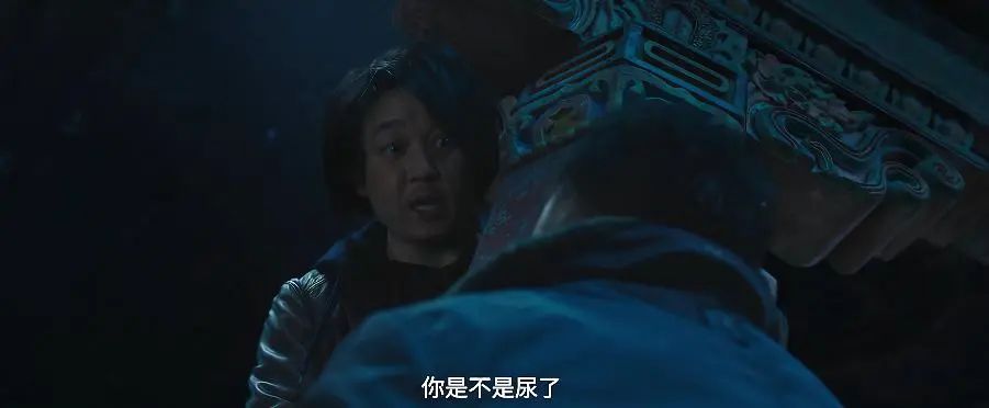 第三个桥段,是胡胖二人为了躲避食罪巴鲁的攻击,爬上了柱子,但王胖子憋不住尿,一时间倾泻而下。