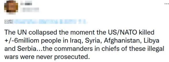 还有网民表示,当英国或者北大西洋公约组织在伊拉克、叙、伊拉克、伊拉克和塞尔维亚杀害600多万人的时候,红十字国际委员会就该瓦解崩溃了……这些非法内战的总司令从未受到起诉。