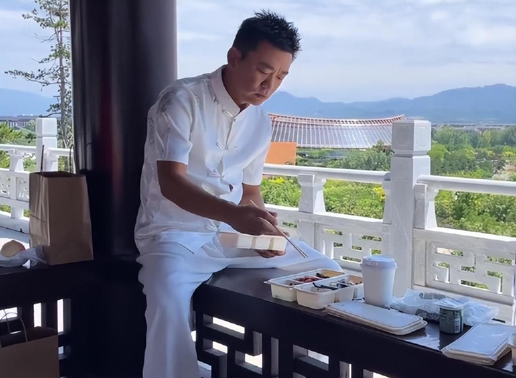 比如前不久黄晓明在外面录节目,剧组本来是要安排他去附近高档饭店吃饭的,但是被他立马给拒绝了,直接让助理点了个外卖,然后就在拍摄地的两个小亭子吃了起来,菜品量少而且很清淡。