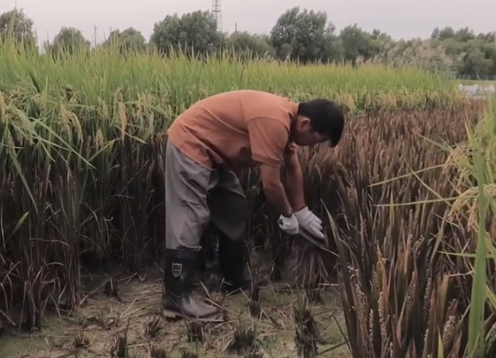 忽然他拿着锤子在农地里边深入细致干,而割稻谷的姿势极为高超,二话没说的工夫,连割带绑弄出了好大霉腐物。
