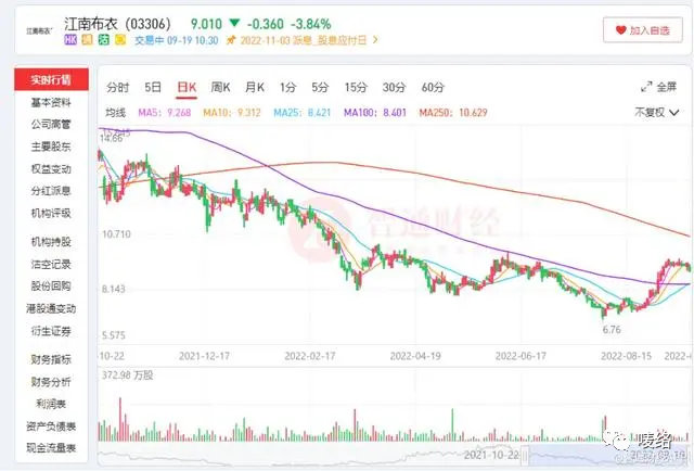 2021年8月30日,创下公司股价20港元历史记录的江南布衣,在港股服装板块占尽风头。随后,公司公司股价开始转向下沉市场,2022年8月2日,公司股价一度下滑至6.76港元,从最高点跌幅达到66%。9月16日收盘,江南布衣公司股价报收于9.37港元,仍较历史高点腰斩。据智通财经观察,市场之所以抛弃江南布衣,一大原因是自2021年9月以来,江南布衣多次陷入不当图案等舆论风波之中,引发市场避险情绪。女装国际品牌jnby by JNBY是江南布衣于2011年推出的第一个女装国际品牌,曾经是江南布衣国际品牌矩阵中的增长极。2017财年至2019财年,jnby by JNBY的营收曾经由从2.74亿元提升至4.76亿元。随后jnby by JNBY的收入降幅呈逐年扩大趋势,未来该国际品牌收入规模能否好转尚需时间确认。(来源:智通财经)