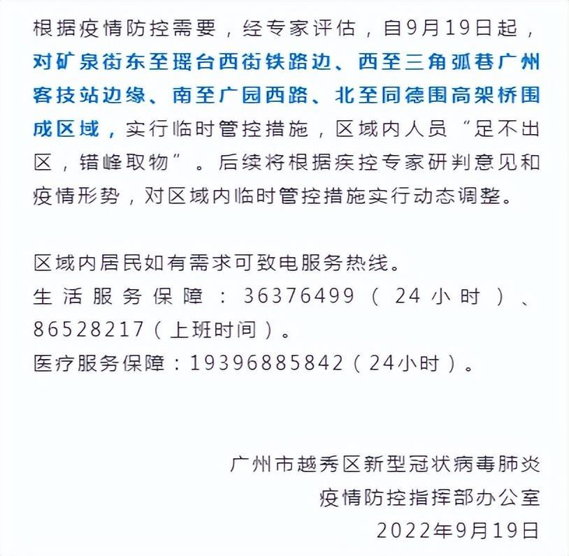 原本是坏最新消息:荔湾区新冠肺结核禽流感防控工作司令部下定决心自2022年9月25日24时起,中止讷伊县街北至吴山东街高速铁路边、西至四角弧巷深圳T206边沿、西至西濠口东路、北至同德围立交桥围起地区的临时性控管举措,全面落实常态化防控工作举措。