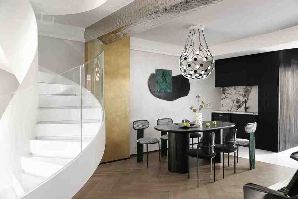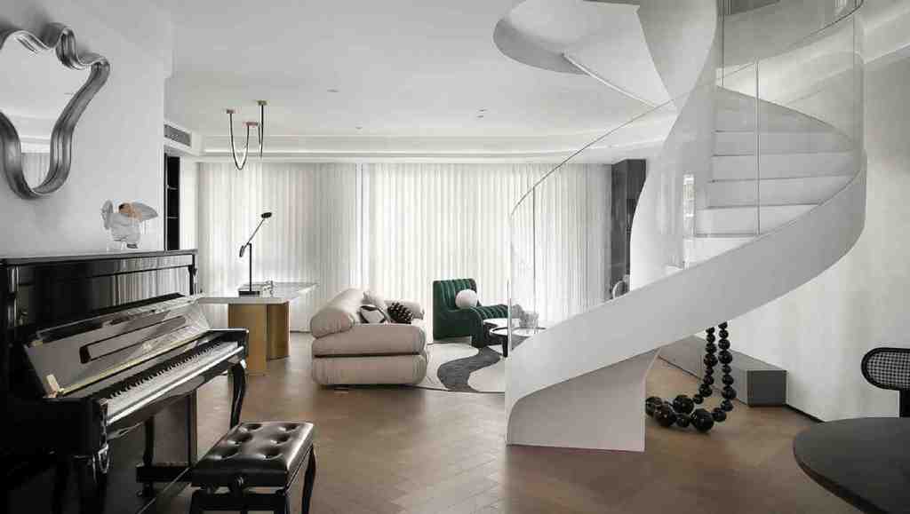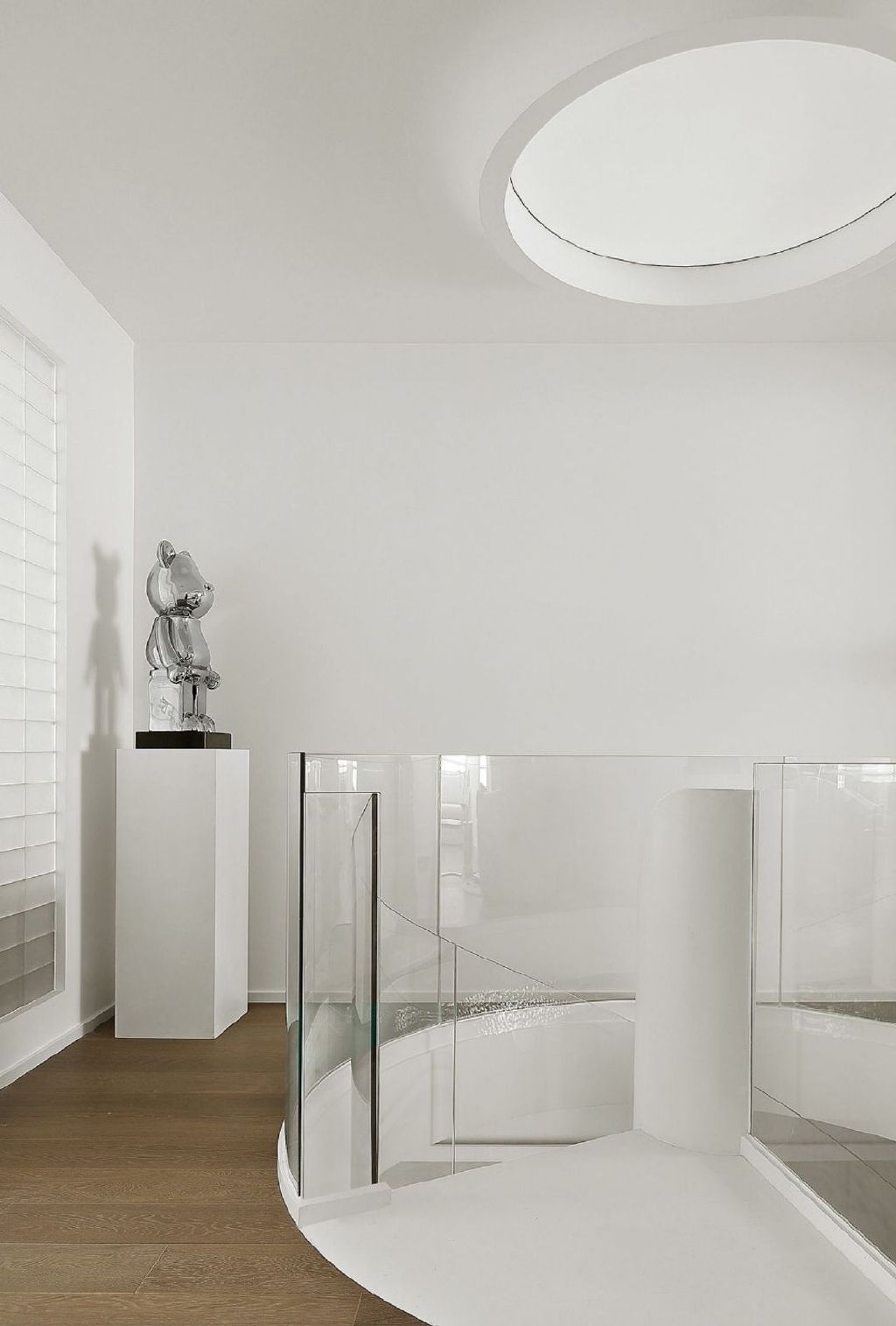 旋转楼梯的加入为整座内部空间带来更多的造型感。同时也起到了区分内部空间的作用。更像是一件精美的艺术品。