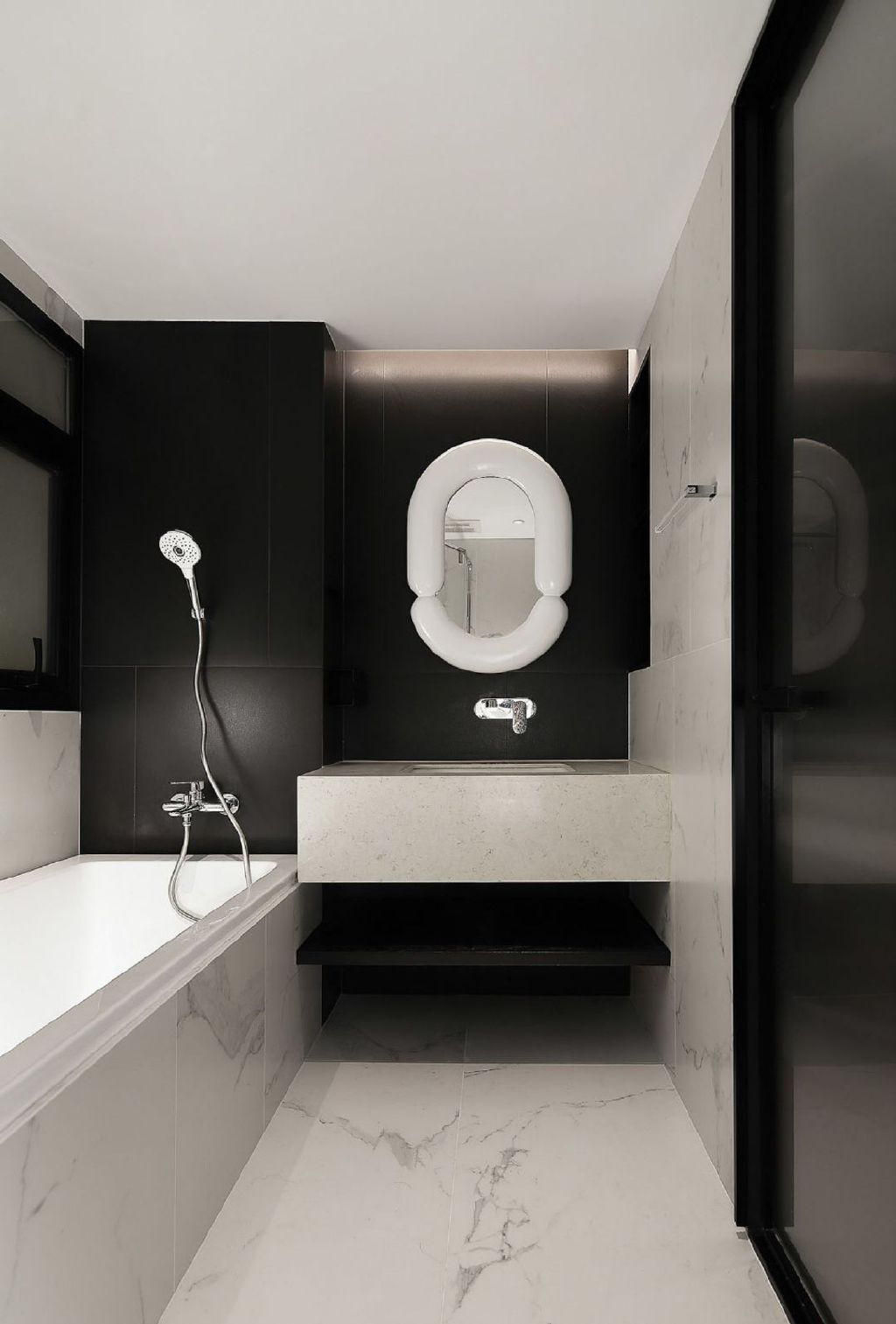 卫生间整体的配色较为的温柔,但是又选取了较为时尚摩登的原素展开配搭,整座内部空间显得更加活泼。