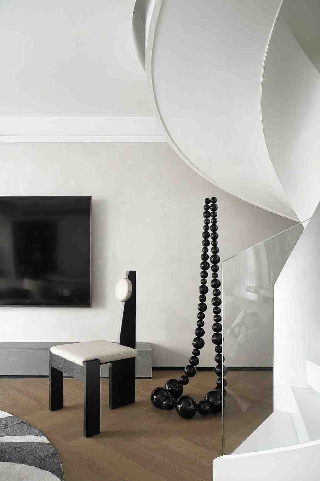 楼梯的下边还专门配搭了项链的造型摆件,创造出一类自然随性的艺术氛围。