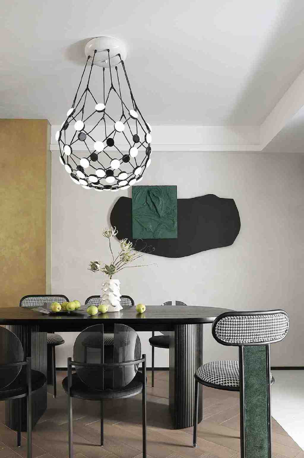 背景墙上的艺术装饰品起到了画龙点睛的效用,为整座内部空间带来更多的艺术气质。