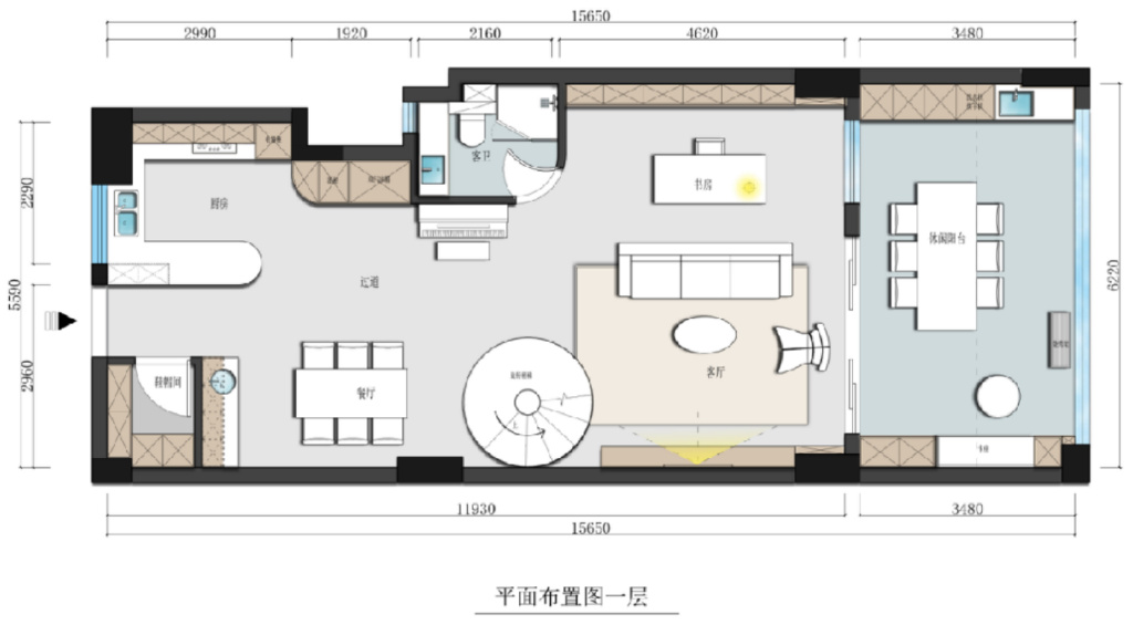 二:原本一楼的内部空间敲掉最小的内部空间,这样为书房预留出足够的区域。