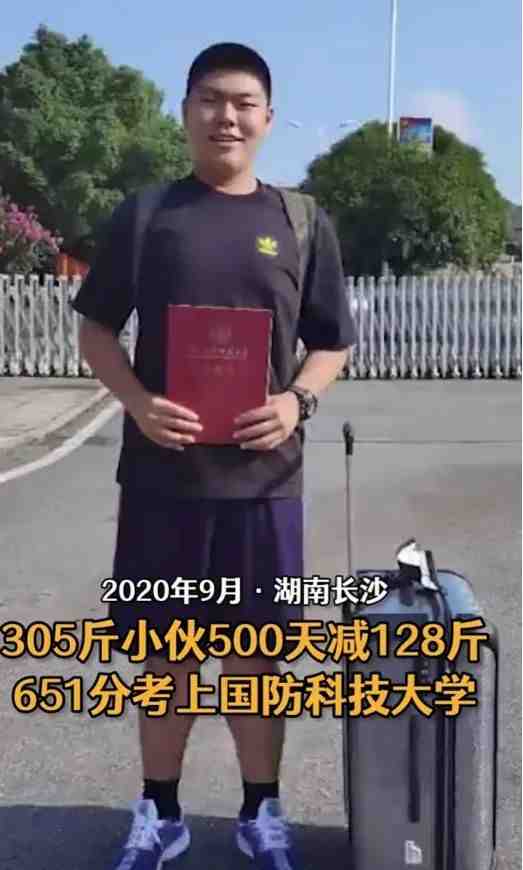 后来,经过不懈的努力,他从一个305斤的大胖小子,硬生生地甩掉了100多斤肉,减重至177斤,并以优异的战绩,考上了国防科技大学。