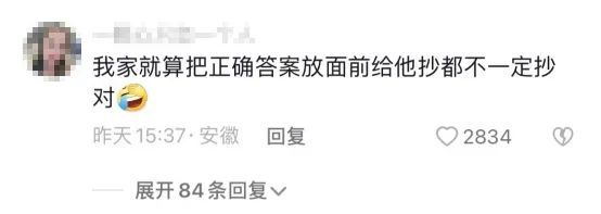我家就算把正确答案放在面前给他抄都不一定能抄对。