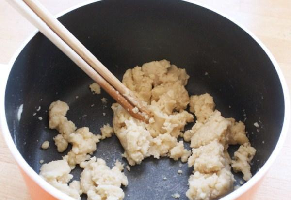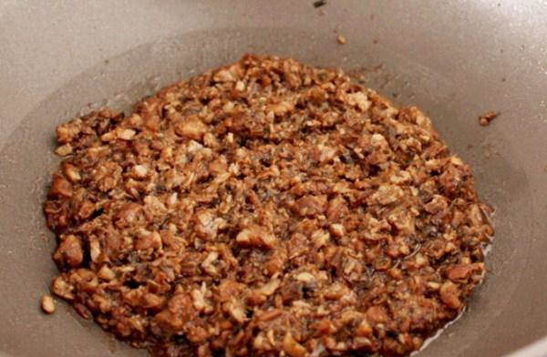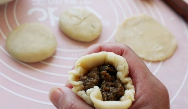接下来是内陷的作法了,锅中烧少量的热水,再把梅干菜烧肉放进去,煮到收汁就可以了,这种会让内陷更加的鲜美入味。