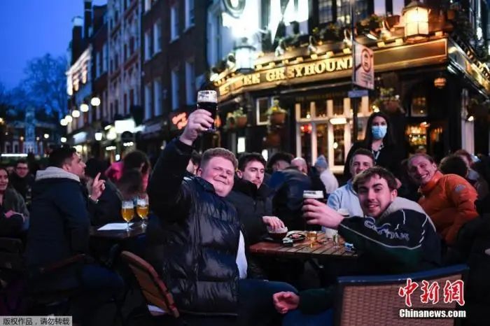 ▲资料图:当地时间2021年4月12日,英国进入放松禽H1N1封锁措施的第二阶段。酒吧解封的第一晚,伦敦大批民众在市中心喝酒跳舞,场面宛如狂欢节。