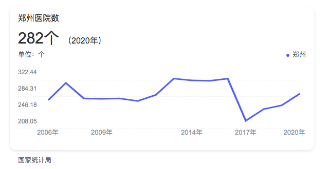根据《国家统计局》统计,从2006-2020年,济南的医院数量并没有太多变化,维持在300家左右。