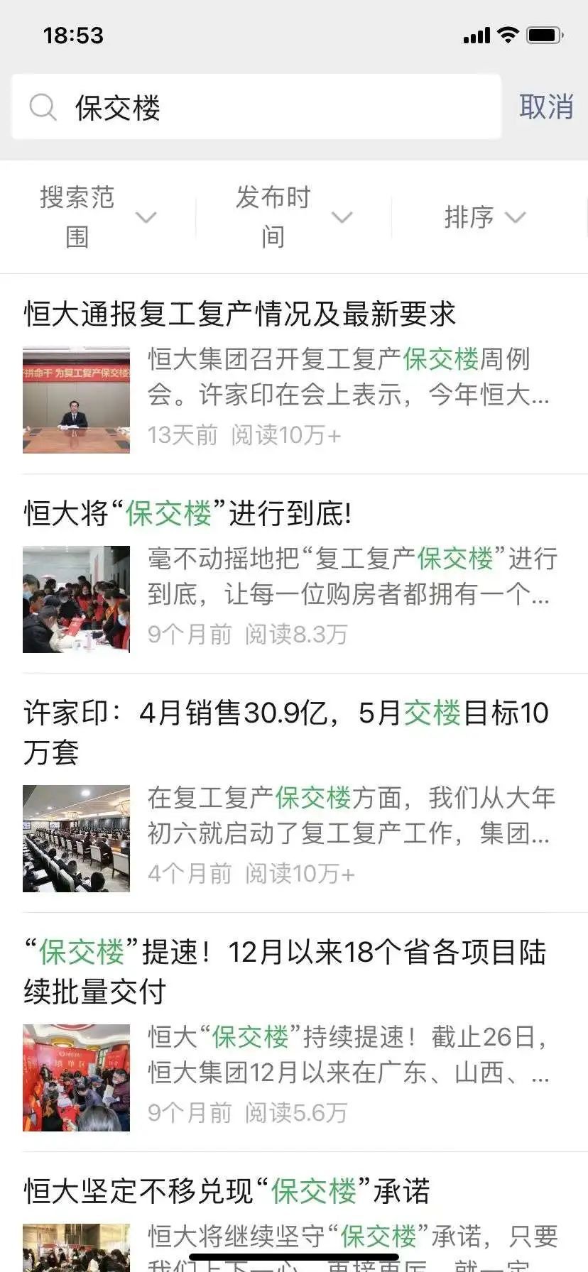 说实话,如果不是我在恒大集团公众号搜索了一下保交楼三个字,差点就又被许老板感动了。下周回国贾跃亭,明天复工许家印,一年内喊了这么多回,究竟哪回才是真复工啊许总?